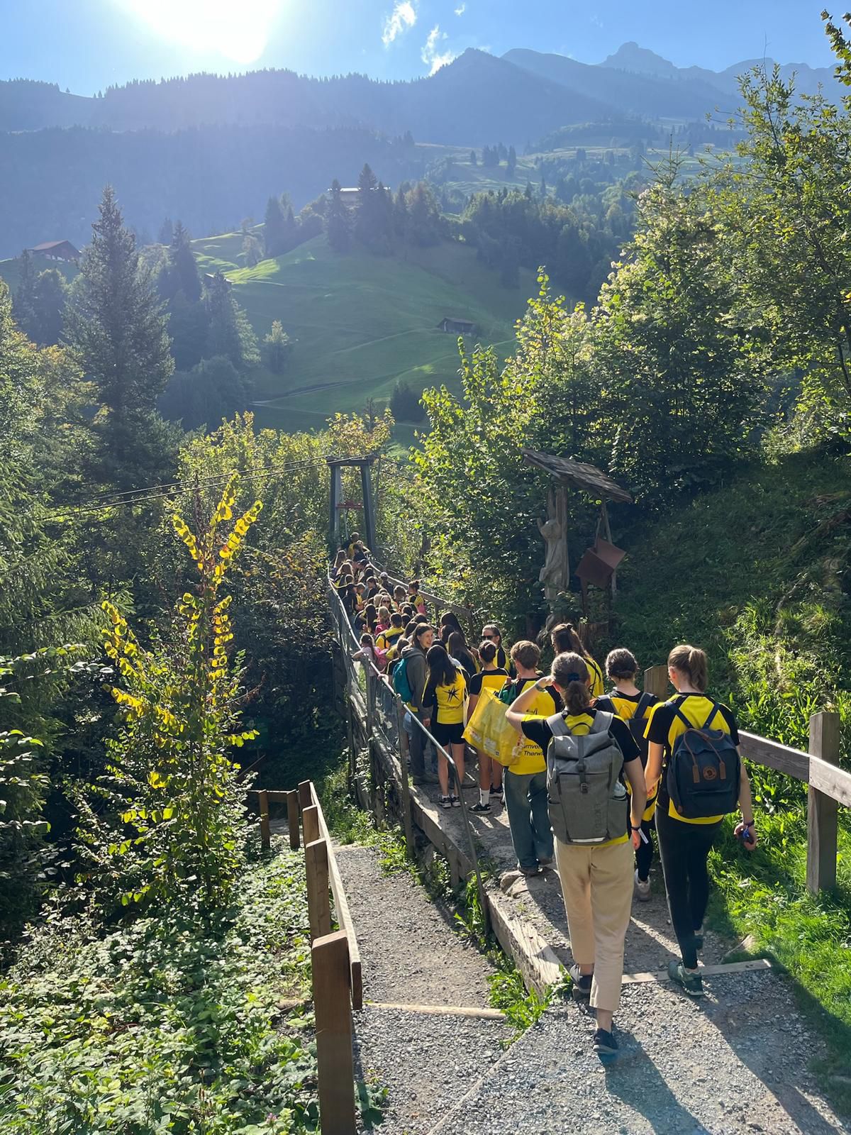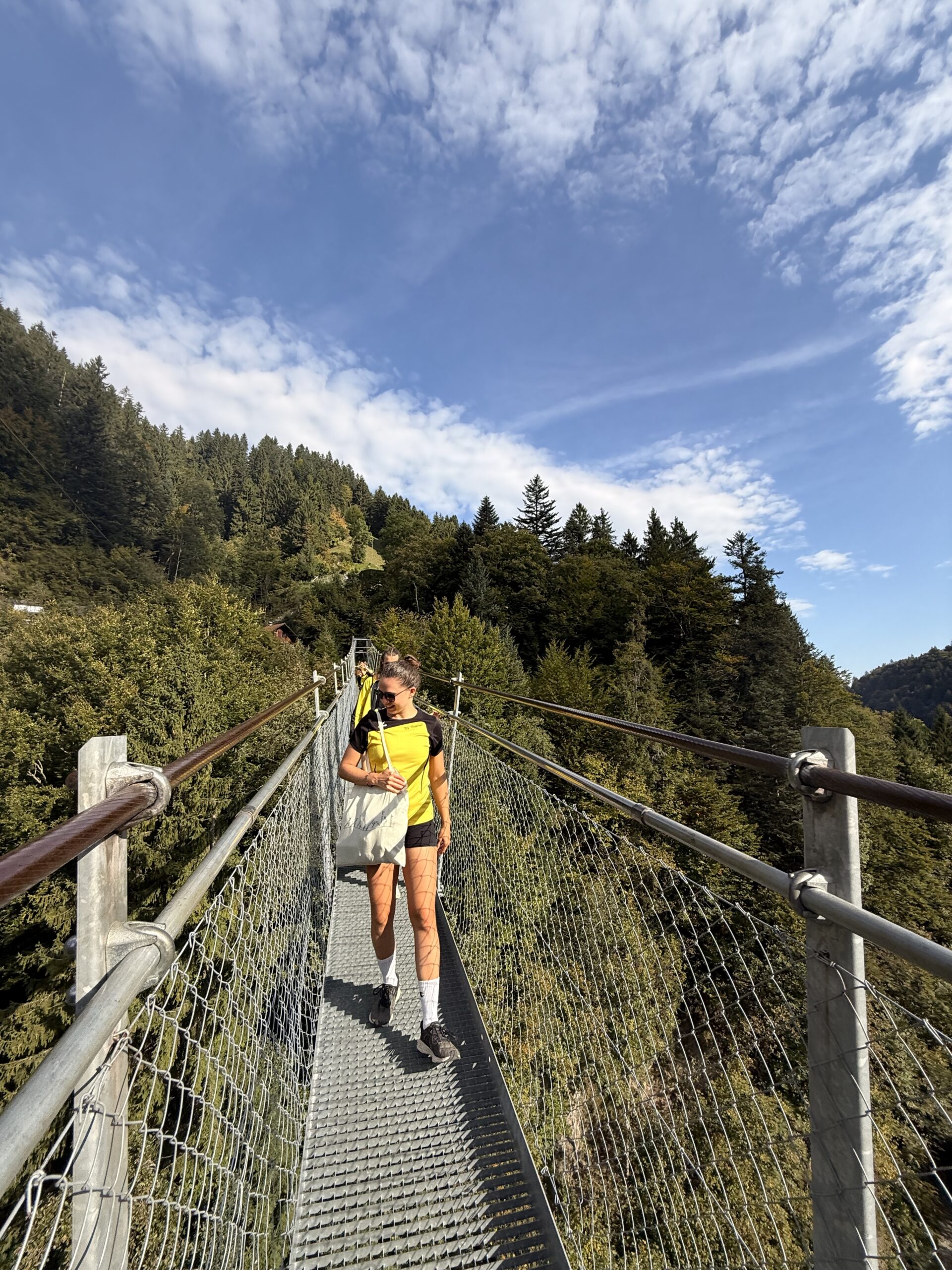 die Überquerung der Hängebrücke Hostalden, welche mit dem Bus von Frutigen in ca. zehn Minuten zu erreichen war. Trotz