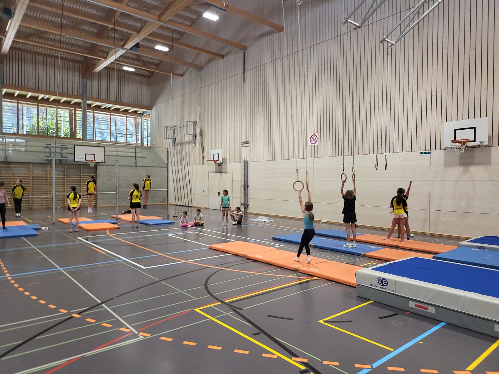 Aufwärmen entweder an den Geräten geturnt oder mit den Leitungspersonen der Polysportgruppe Spiele gespielt. Nach dem