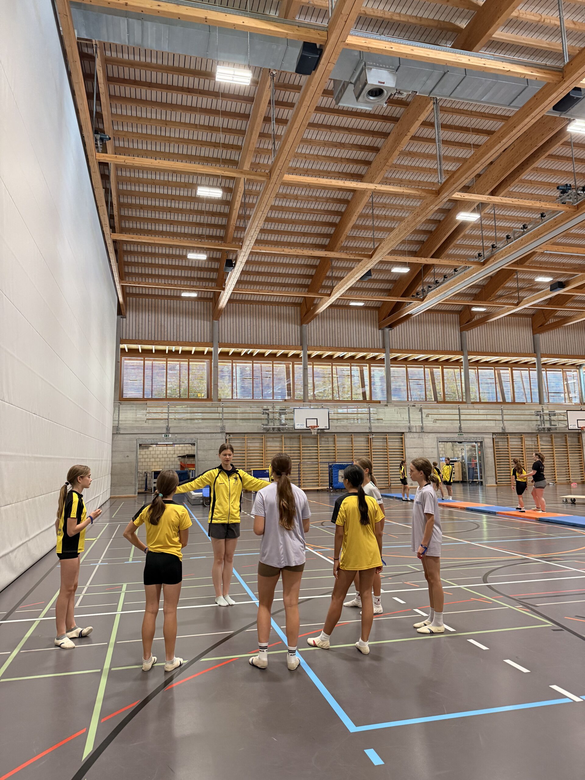 Plausch-Mittagessen ging es weiter in die moderne Dreifachturnhalle von Frutigen. Dort wurde nach einem spielerischen