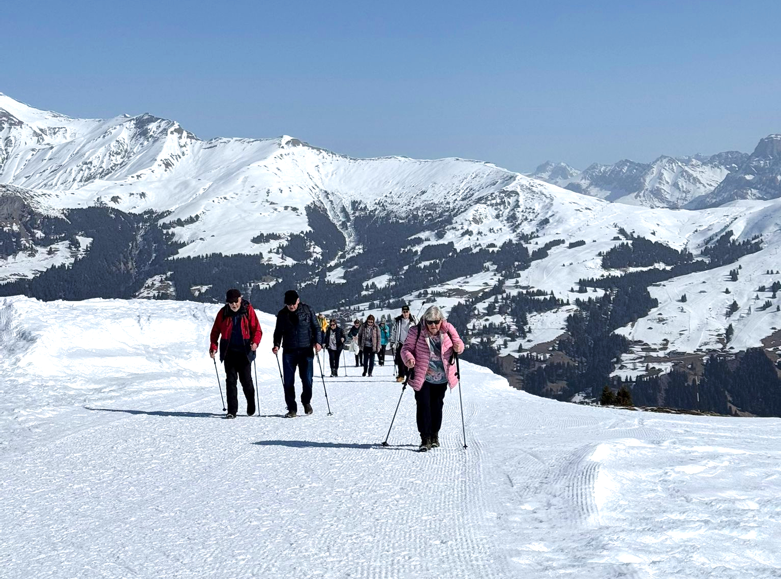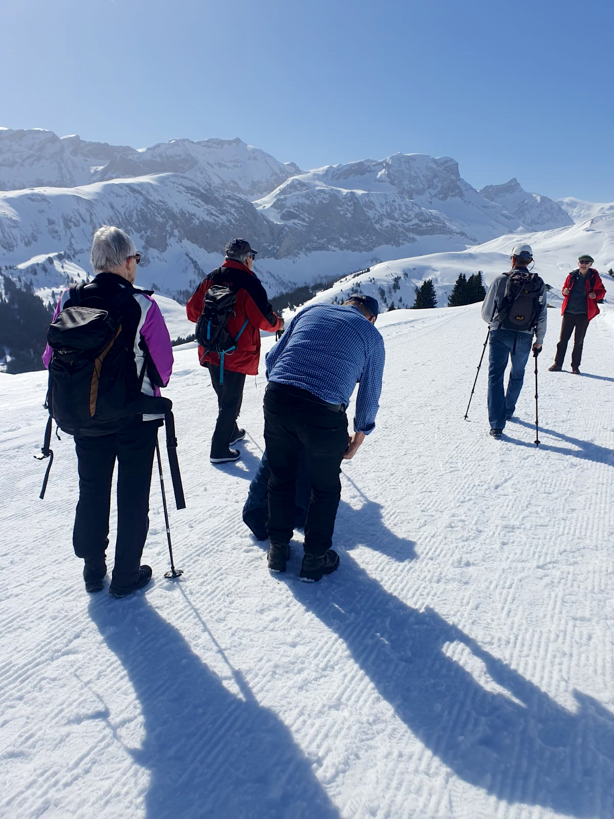 Nach einer klaren Vollmondnacht starteten 33 Turnerinnen und Turner früh morgens in Therwil zu unserer diesjährigen Winterwanderung auf den Betelberg oberhalb der Lenk.