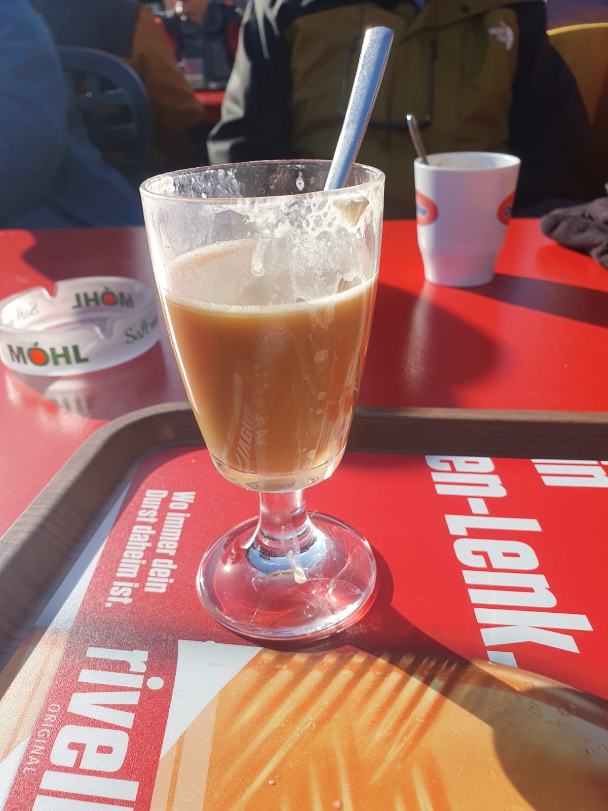 Auf der Bergstation angekommen, gönnten wir uns im Restaurant zuerst einen stärkenden Drink.
