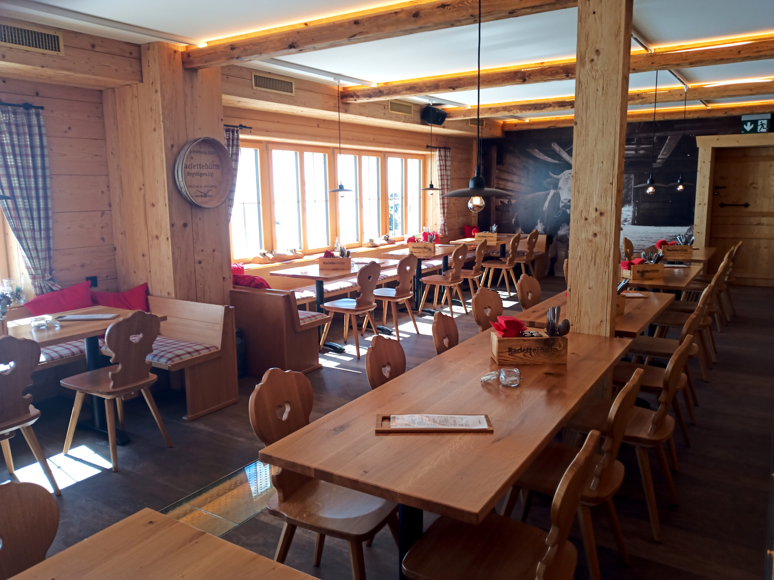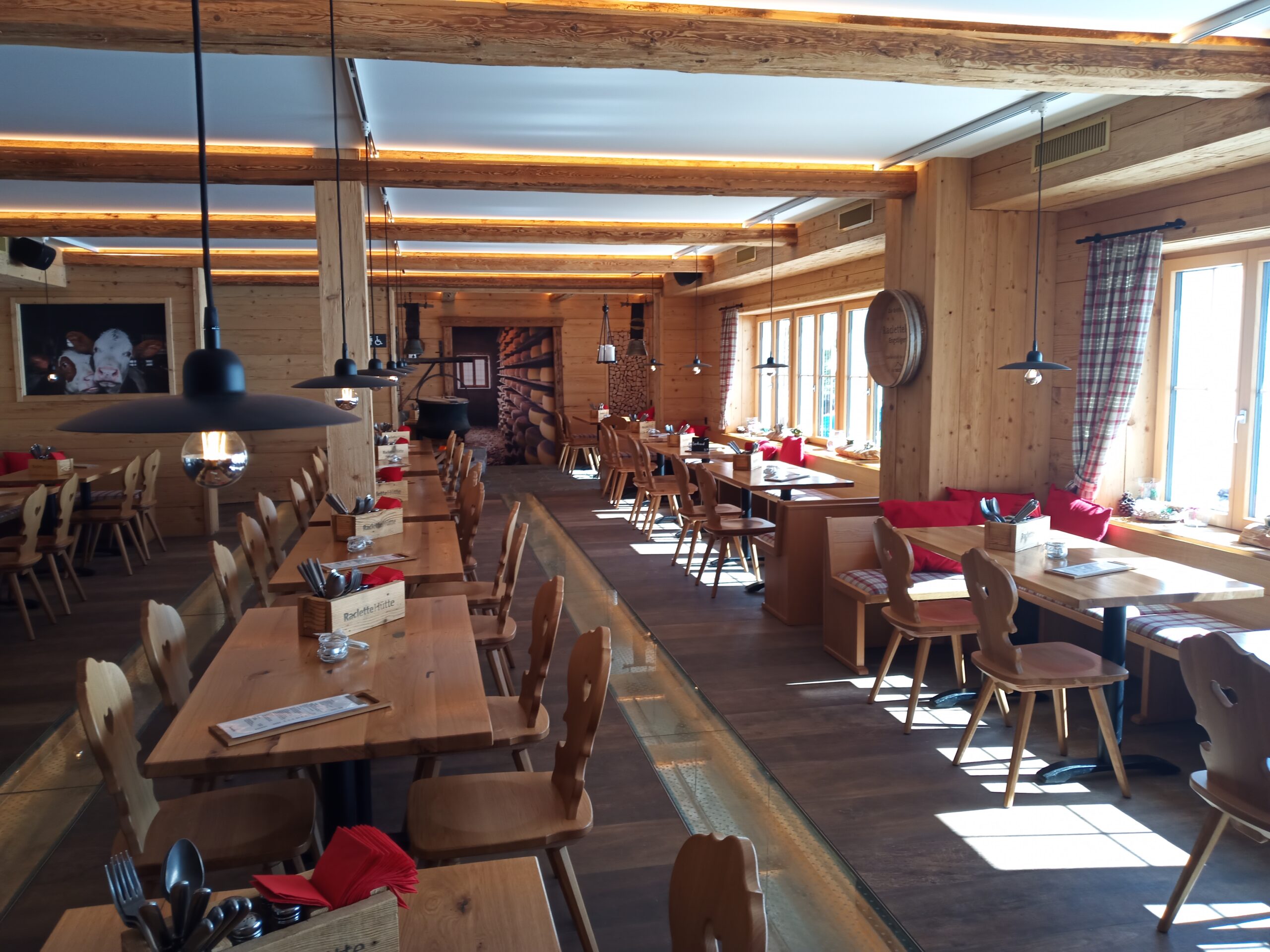 Nach der Rundwanderung treffen wir uns in der gemütlichen Raclettehütte. Dort geniessen wir gemeinsam ein Raclette à Discrétion – herzhaft, warm und perfekt nach einem Tag im Schnee. Wer danach noch Lust hat, begleitet uns auf einen kurzen Verdauungsrundgang, bevor wir mit der Seilbahn wieder ins Tal schweben.
